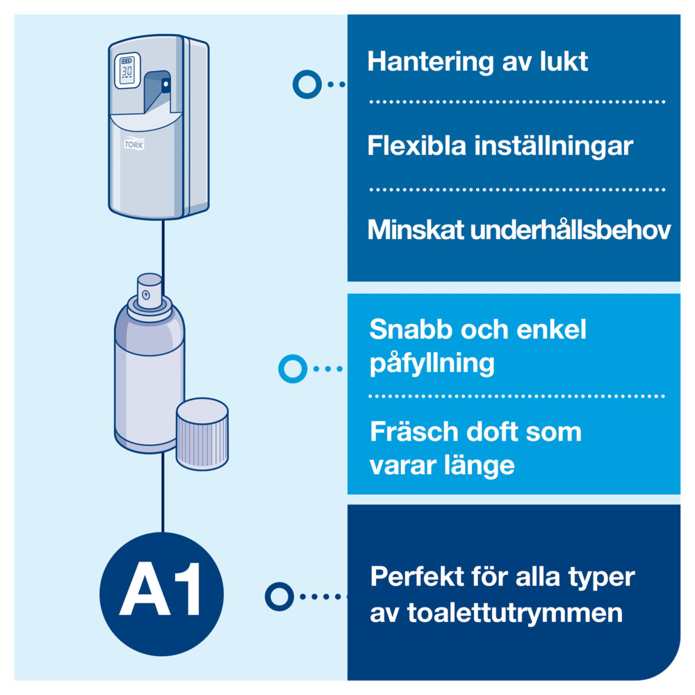 Kompatibel med Tork A1-doftrefiller i olika doftvarianter