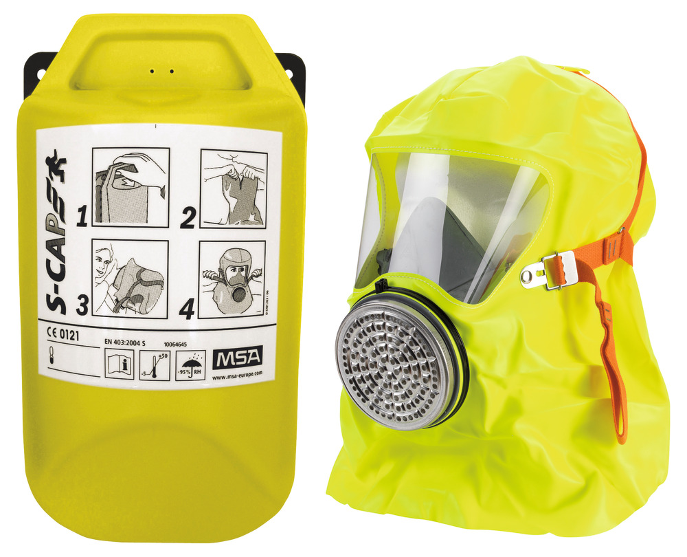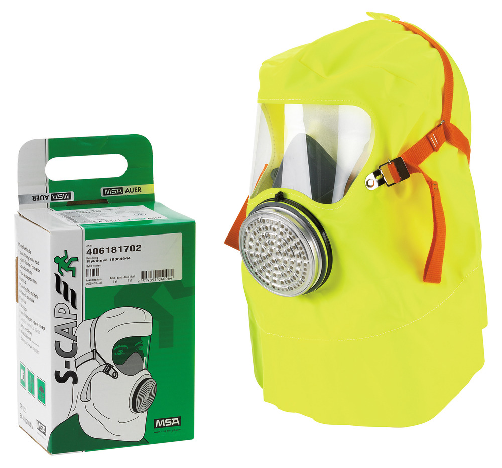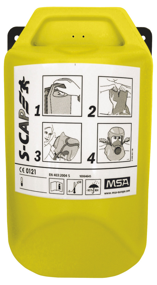 MSA S-Cap Flykthuva i vägghållare Flykthuva S-Cap i självlysande väggbehållare.