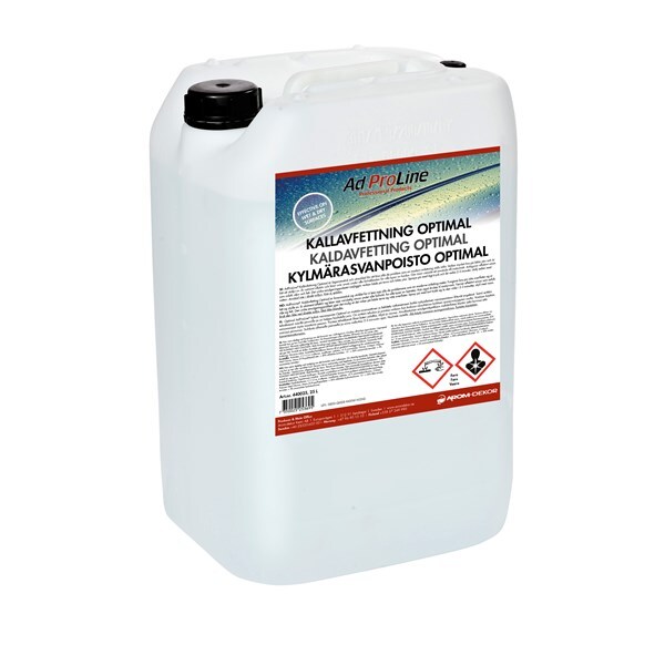 AdProLine® Kallavfettning Standard är ett emulgerande kallavfettningsmedel med mycket bra lösningsförmåga. Lämplig för rengöring av fordon och maskindelar nedsmutsade av exempelvis asfalt, tjära och fett. AdProLine® Kallavfettning Standard innehåller ett effektivt emulgatorpaket vilket ger produkten en extremt bra förmåga att väta på olika ytor och därmed kraftigt öka lösningsförmågan. Produkten är lågaromatisk vilket innebär att den endast har en liten egendoft som medför en bättre arbetsmiljö för brukaren. Genom den emulgerande egenskapen blir sköljningen med vatten mer effektiv.