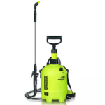 Tryckspraypump med behållare i slitstark polyetylen.