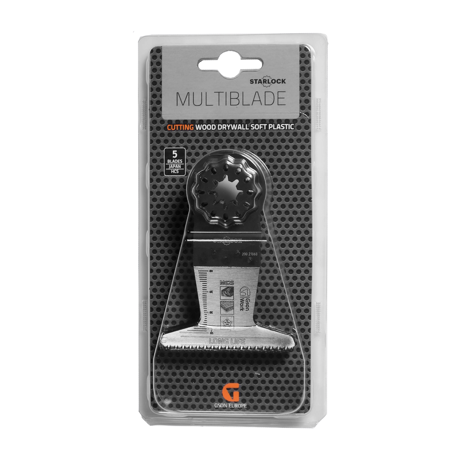 Multisågblad i hårdmetall (karbid) med TiN-beläggning med extremt hög slittålighet. 100 % längre livslängd gentemot karbidsågblad utan beläggning och 30 gånger längre livslängd jämfört med HSSsågblad. Rätt val för hårda material såsom järn, rostfritt eller kopparrör. Kan till och med användas för härdade skruvar (Spax) och höghållfasta maskinskruvar. Även perfekt lämpad för nötande material såsom tegelsten, tegel eller cementfiberplattor samt laminat, CFK och GFK. Bra sågkapacitet och snittkvalitet i alla trämaterial såsom hårt trä eller spånskivor. Smal insvängd form för optimal avverkningshastighet och bra spåntransport.Starlock Multiblade är utrustade med Starlock-teknologi, känd för sin höga kvalitet och prestanda. Dess skär är speciellt utformade för att skära effektivt genom material som trä, metall och plast.