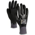 OX-ON Flexible Advanced 1904 är en arbetshandske av högsta kvalitet,med ett extra lager nitrilbeläggning för att göra den vattentät. Handsken är extremt slitstark och sitter som gjuten på handen. Passformen är utmärkt och ytterst bekväm att bära dag efter dag – oavsett vilket yrke du har. OX-ON Flexible Advanced 1904 är stickad i nylon och elastan,vilket ger en unik andningsförmåga samtidigt som handsken har en oöverträffad smidighet och komfort. Handflatan och fingrarna är belagda med ett nitrilskum i specialkvalitet som gör att du bibehåller en utmärkt fingertoppskänsla och ett exakt och säkert grepp. Advanced 1904-handsken är OekoTex-certifierad. Det är din garanti för att handsken inte innehåller kemikalier eller färgämnen som är skadliga för hälsa eller miljö. Handsken är också Sanitized-behandlad,så den känns fräschare under längre tid och skyddar dig mot bakterier och svettlukt. En handske i en klass för sig!