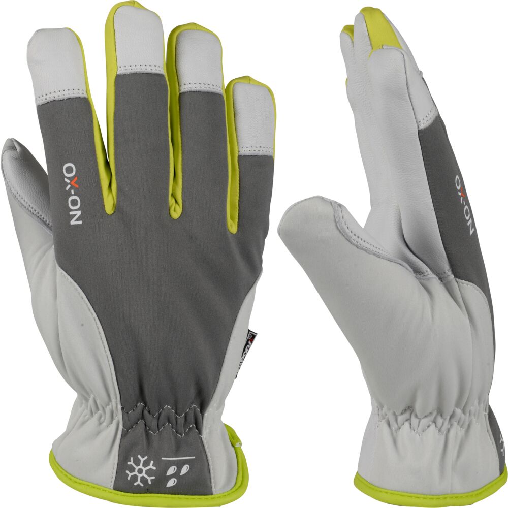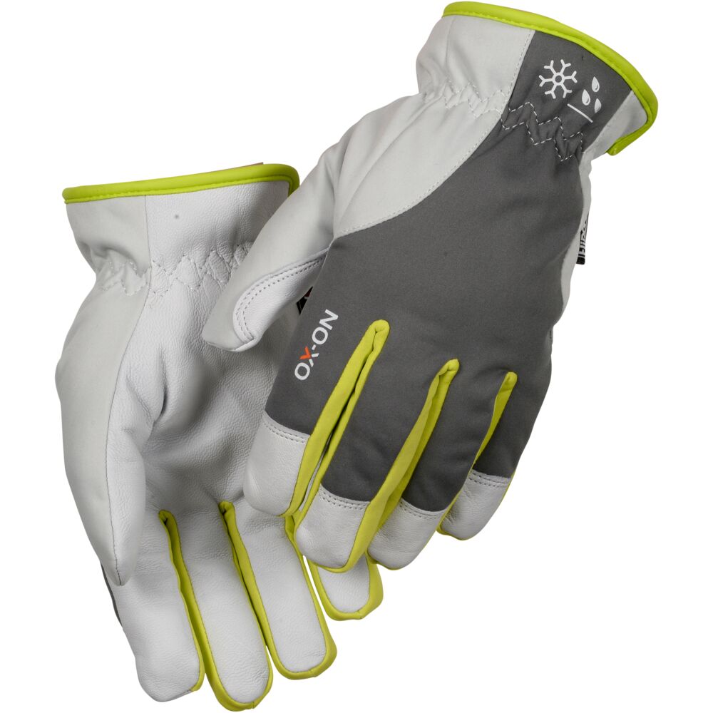 Med OX-ON Winter Supreme 3600 får du en exklusiv och bekväm vinterhandske som garanterat håller fingrar och händer varma till och med under extrem kyla. Vinterhandsken kan användas både professionellt och privat, vid arbeten under svåra och särskilt kalla förhållanden. OX-ON Winter Supreme 3600 är det perfekta valet för arbetsuppgifter relaterade till transport, trädgård, kyl- och fryshus eller snöröjning. OX-ON-handsken har mjukt och smidigt getskinn på handflata och fingertoppar samt en vind- och vattentät ovandel i grå softshell-polyester. Handsken är vinterfodrad med 70 g Thinsulate, vilket garanterar en bekväm och utomordentligt varm handske. Den har också ett Hipora-membran som gör den 100 % vattentät. Supreme 3600 är ett utmärkt val för dig som arbetar i kalla och våta miljöer, även under längre perioder.