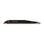 Rivningsblad med karbidtänder som ger extremt lång livslängd och extrem hållbarhet även i de tuffaste miljöerna. Snabb och aggressiv 6 TPI geometri möjliggör snabbare kapning i trä med spik och skruv samt en rad andra byggmaterial (trä/spik/bultar/skruv/gjutjärn m.m). Kapar även härdade skruvar och spik. 1,30 mm tjock och robust klinga för raka och exakta kapningar. 25 mm bladhöjd ger förbättrad stabilitet och minimala vibrationer.