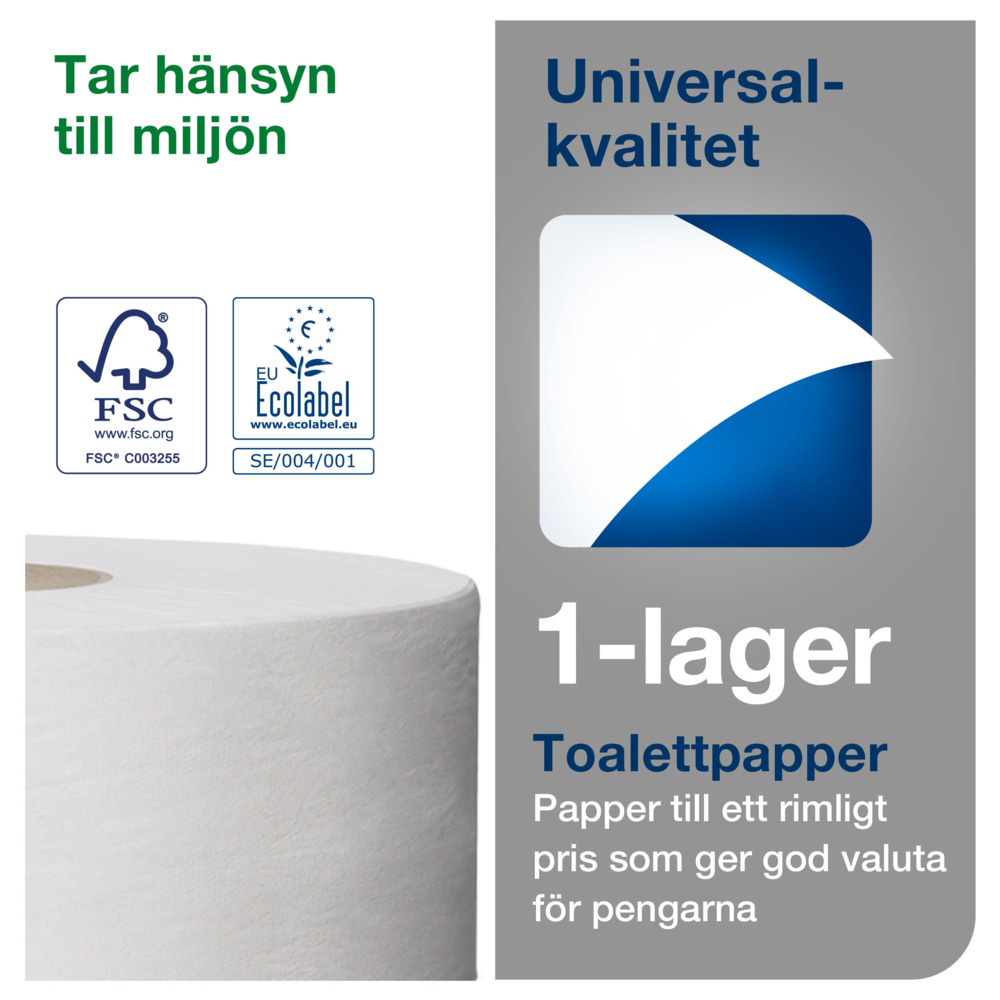 - Effektiv och kostnadseffektiv: Vårt jumbo toalettpapper är perfekt för välbesökta toalettutrymmen och täcker basbehov på ett kostnadseffektivt sätt.