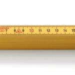 Meterstock tillverkad av glasfiberförstärkt polyamid, som ger ökad motståndskraft mot fukt. Metrisk gradering i svart på båda sidor och röda decimetersiffror.