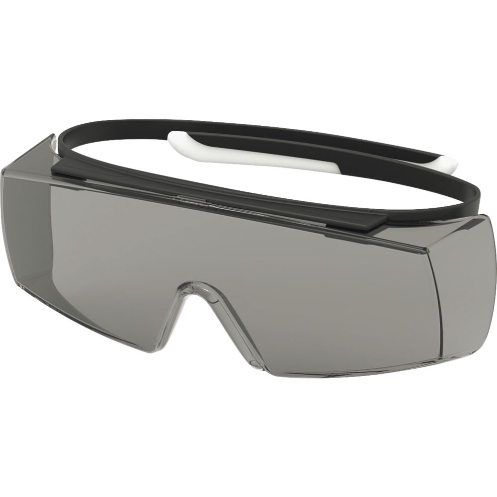 Superlätta skyddsglasögon som kan bäras över de flesta vanliga glasögon. Mörkt glas. Reptålig på båda sidor av glaset Skalmarna går gradvis från hårt till mjukt material och sluter sig försiktigt om huvudet istället för att placeras bakom öronen. Absorberar UV-strålar 100 %.